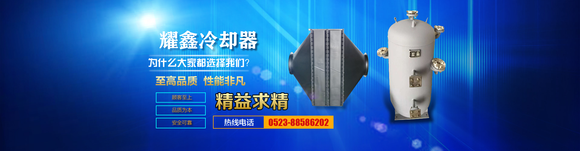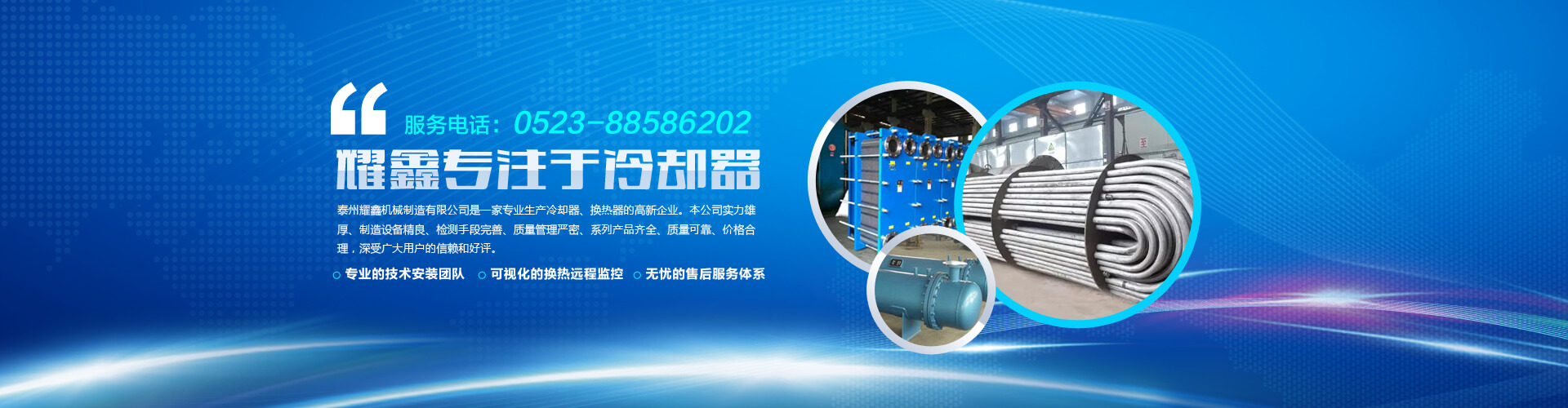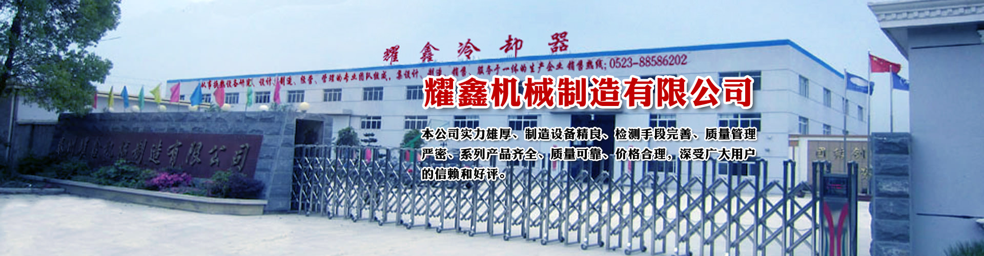 免費咨詢方案 +泰州耀鑫機(jī)械制造有限公司座落于風(fēng)景如畫的江蘇魚米之鄉(xiāng)--全國文明城鎮(zhèn)婁莊鎮(zhèn),是一家專業(yè)生產(chǎn)風(fēng)冷卻器、列管式冷卻器、板式冷卻器的企業(yè)。本公司實力雄厚、制造設(shè)備精良、檢測手段完善、質(zhì)量管理嚴(yán)密、系列產(chǎn)品齊全、質(zhì)量可靠、價格合理,深受廣大用戶的信賴和好評。